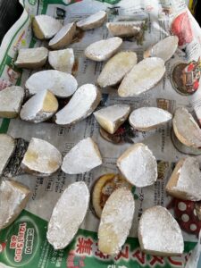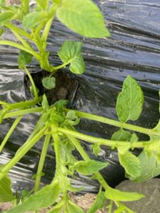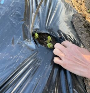 ※メークイーン・男爵 芽がでてきたら、マルチに穴を開けて芽を外へ出します