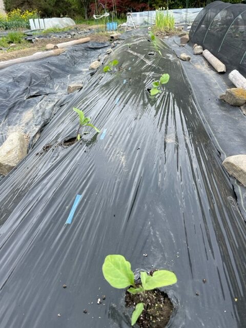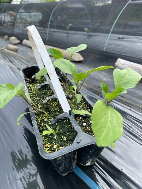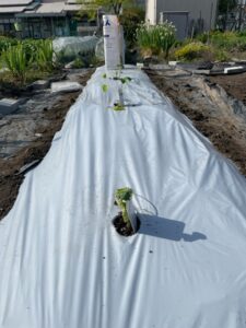 【なす】苗を植えつけました 2026.04.24 2026年4月27日 最終更新日時 : 2026年4月27日 hoshinomachi 朝晩の気温差による寒さ対策と、風にあおられて倒れないように、支柱を立ててナイロン袋をかぶせています。